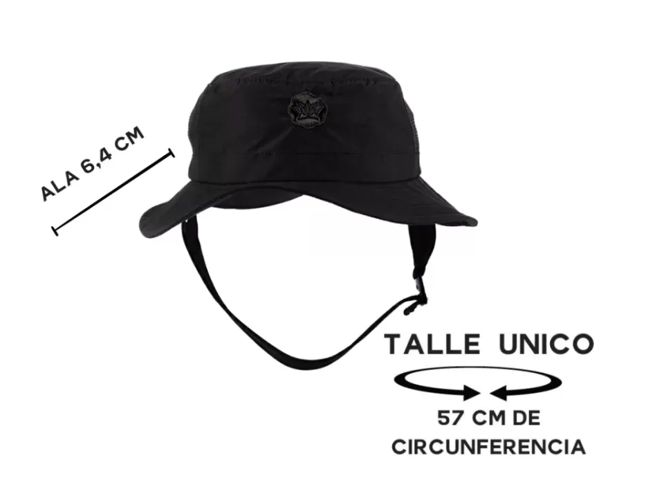 talle único, elástico regulable en nuca ; circunferencia de 56 a 60 cm.